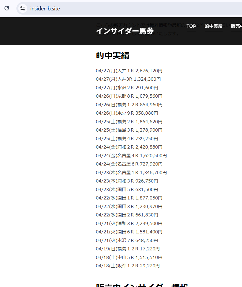 インサイダー馬券を優良、悪質認定している評価サイトはこちらにまとめますが、検証時点では市場の評価サイトらに掲載すら見当たらない状況です。